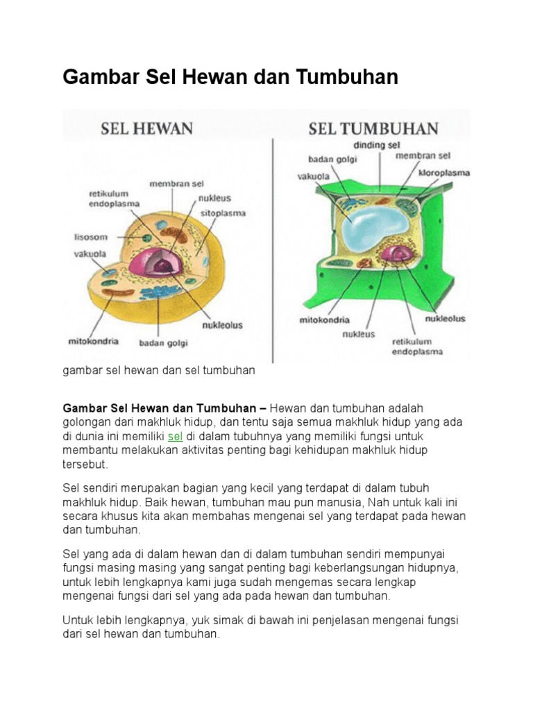 Gambar Sel Tumbuhan Dan Sel Hewan | PDF